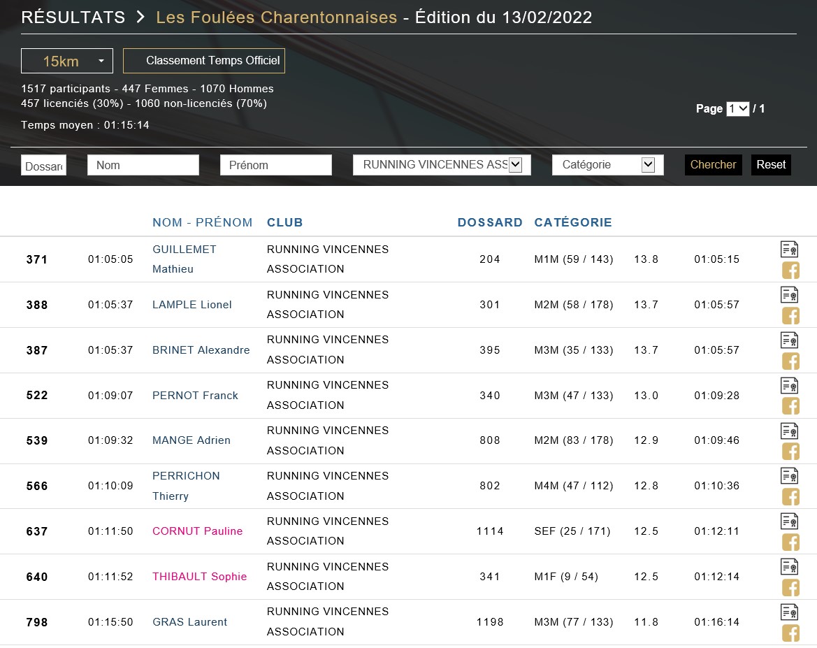 Résultats Foulées de Charenton 2022